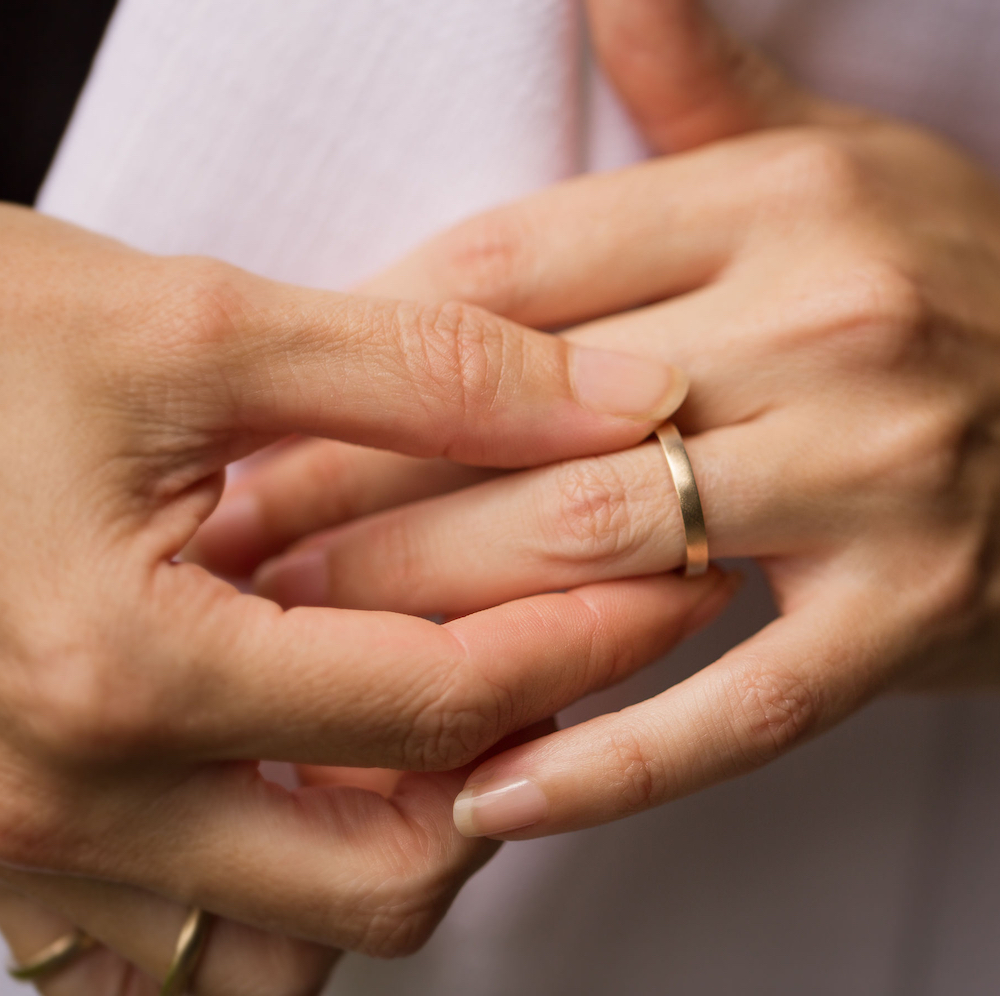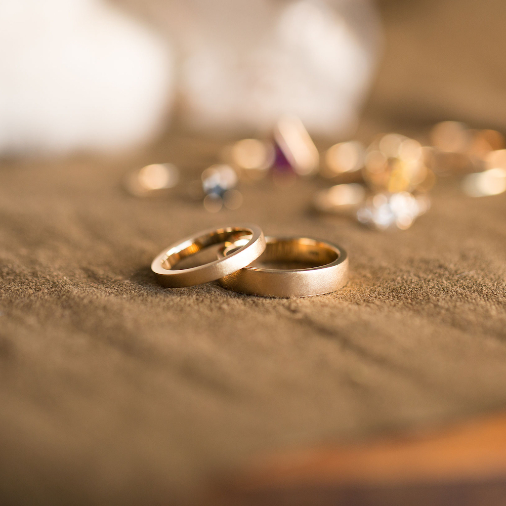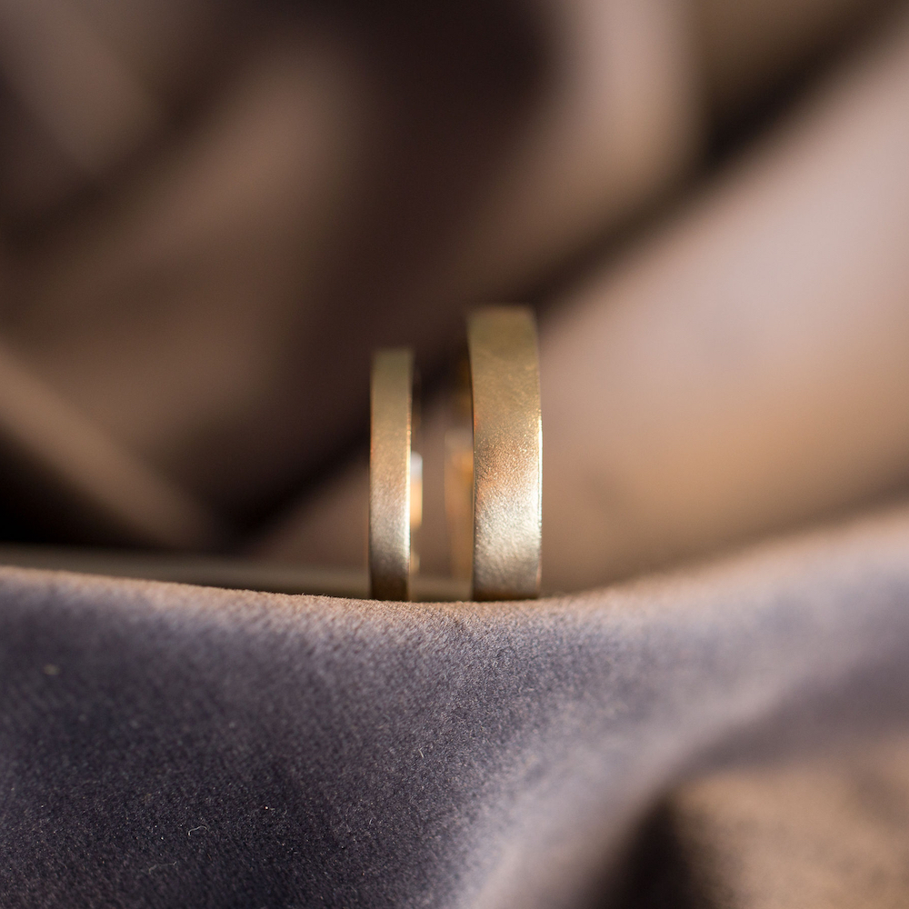These solid, angular bands are a perfect choice for a couple looking for a simplistic and symbolic set, yet with an ‘organic’ feel due to the matte finish.