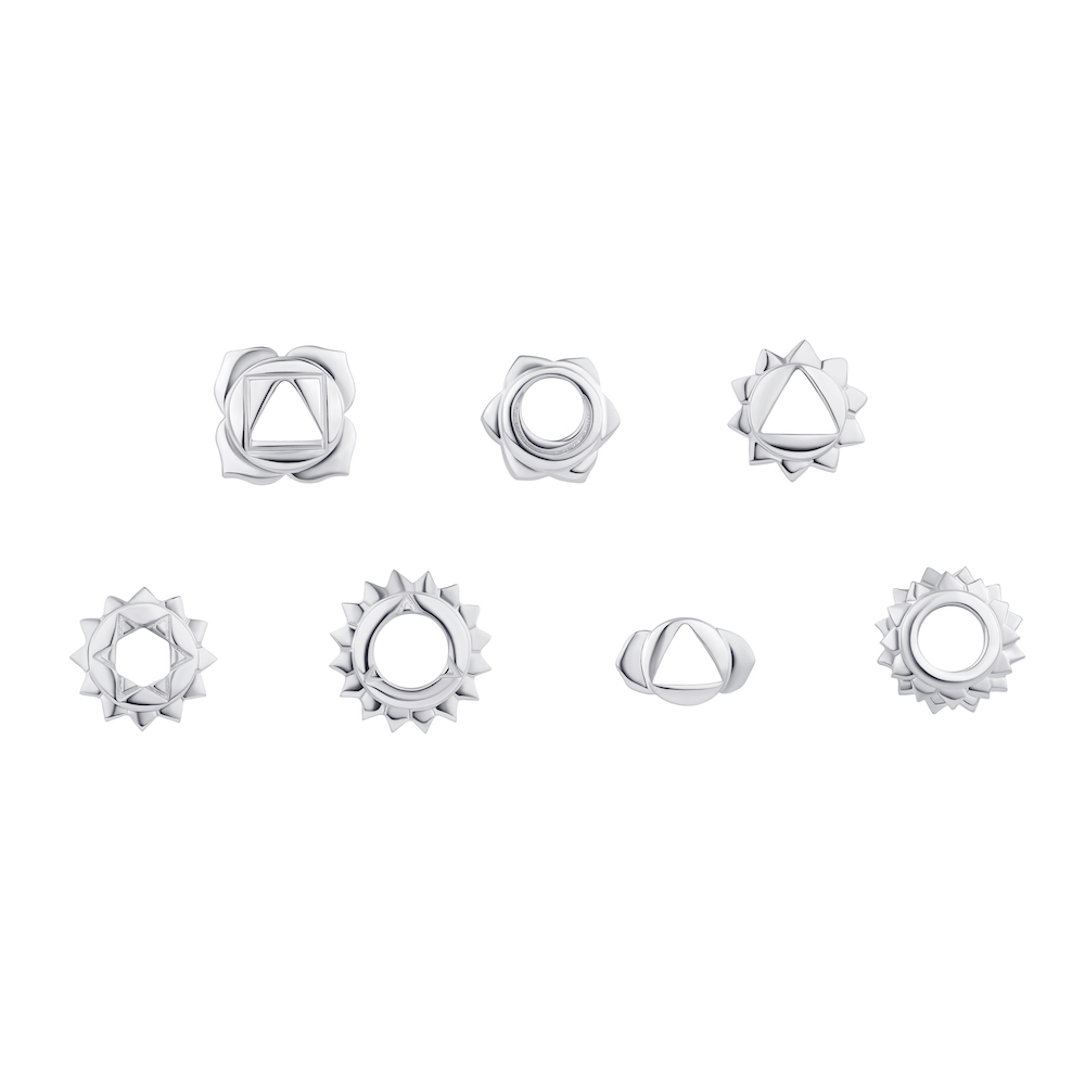 • 6 x additional 9kt White Gold signature size Chakra charms.