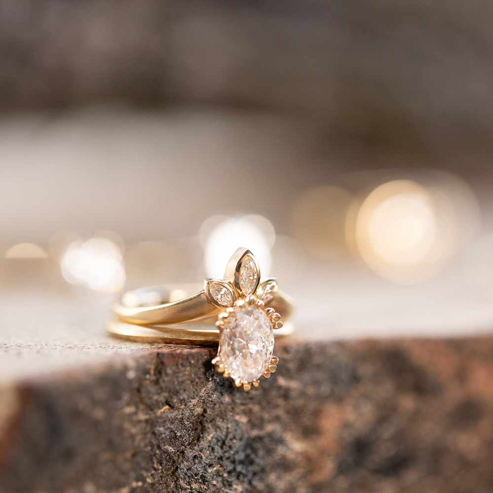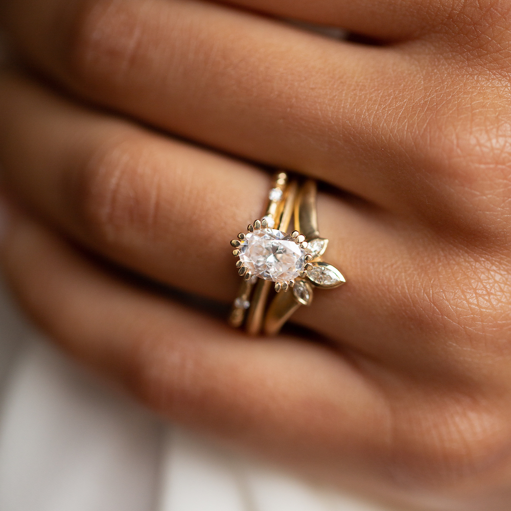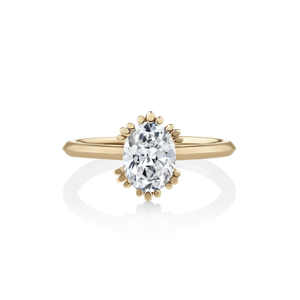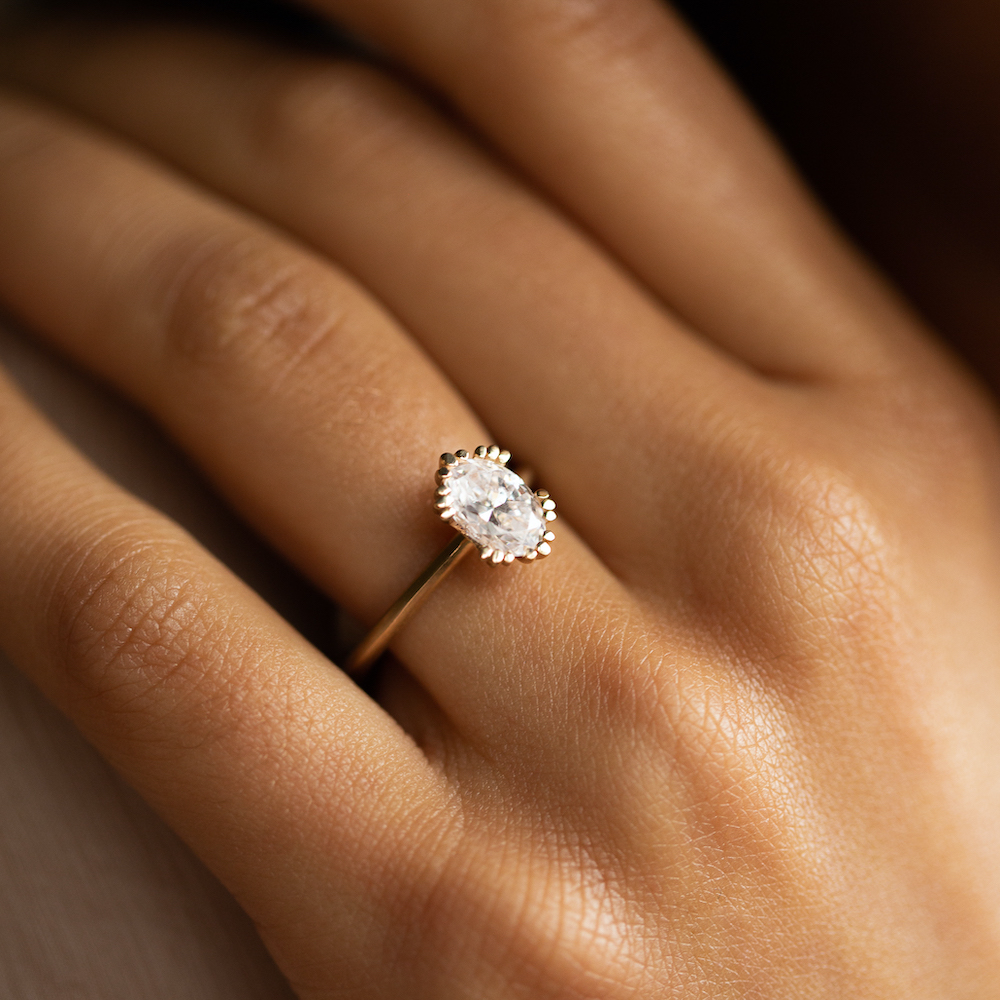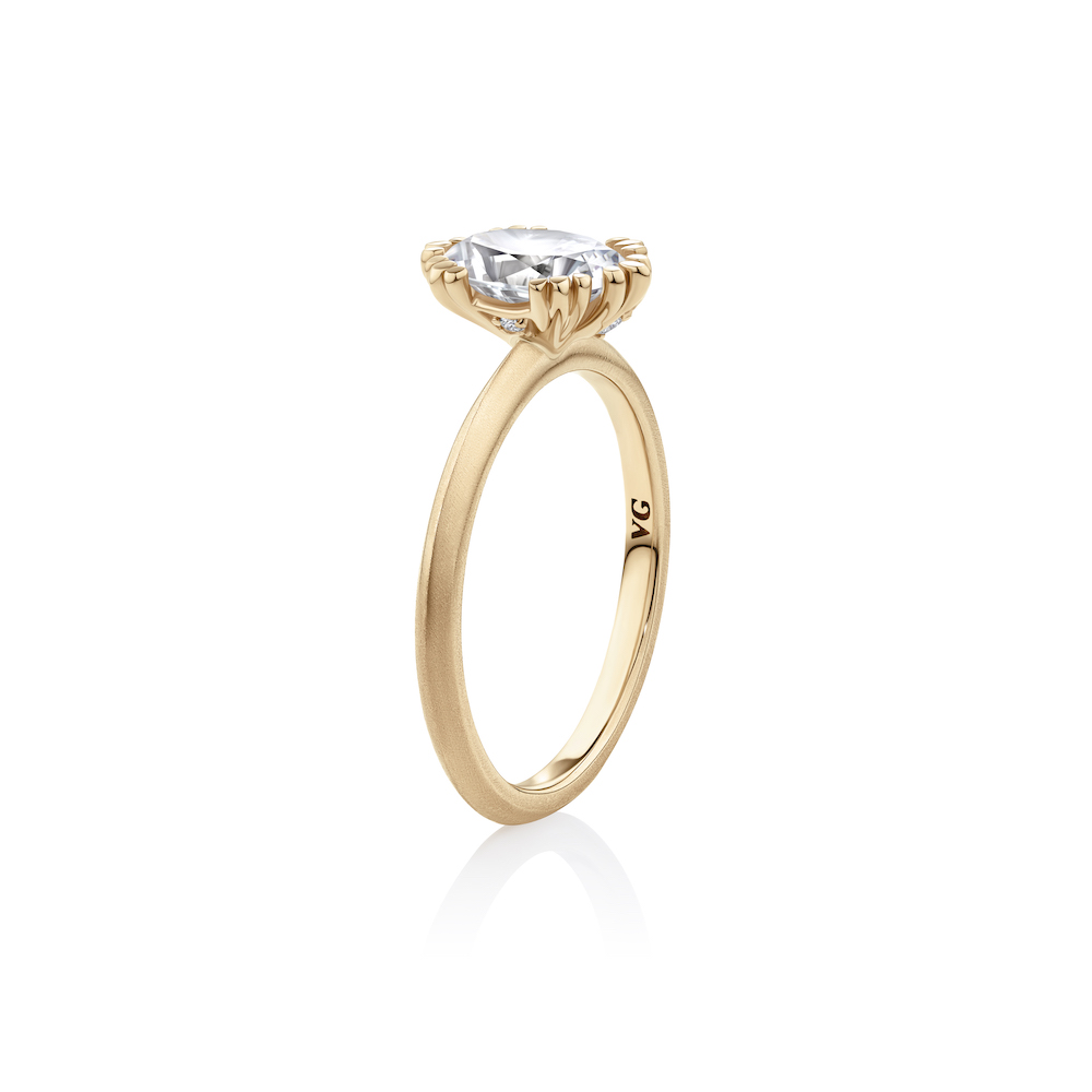 The Violet Gray Fleur Ring is crafted with your choice of solid 14k Australian Gold and a hand-selected Oval Diamond sourced to align with your personal desire and budget.