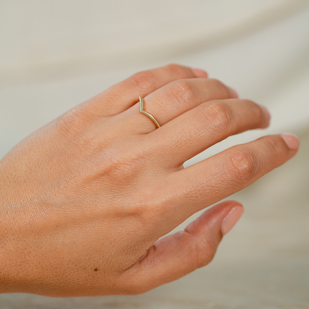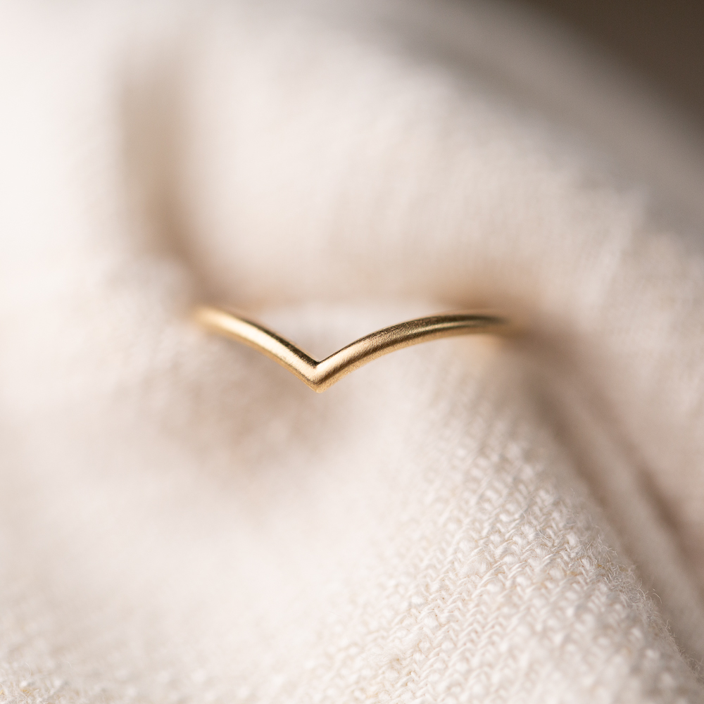 A modern take on a class design – the Violet Gray gentle wishbone ring. Designed to accompany low profile rings that are set low / down to the hand. Ie. Your stone is set into the band, rather than sitting on top of the band.