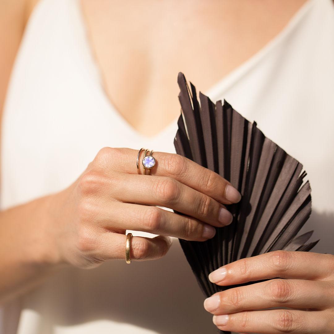 The IBU Moonstone ring carries a harmonising, protective and calming essence. On the hand she reminds the wearer that life is cyclic and regardless of the season you find yourself, be in it now.