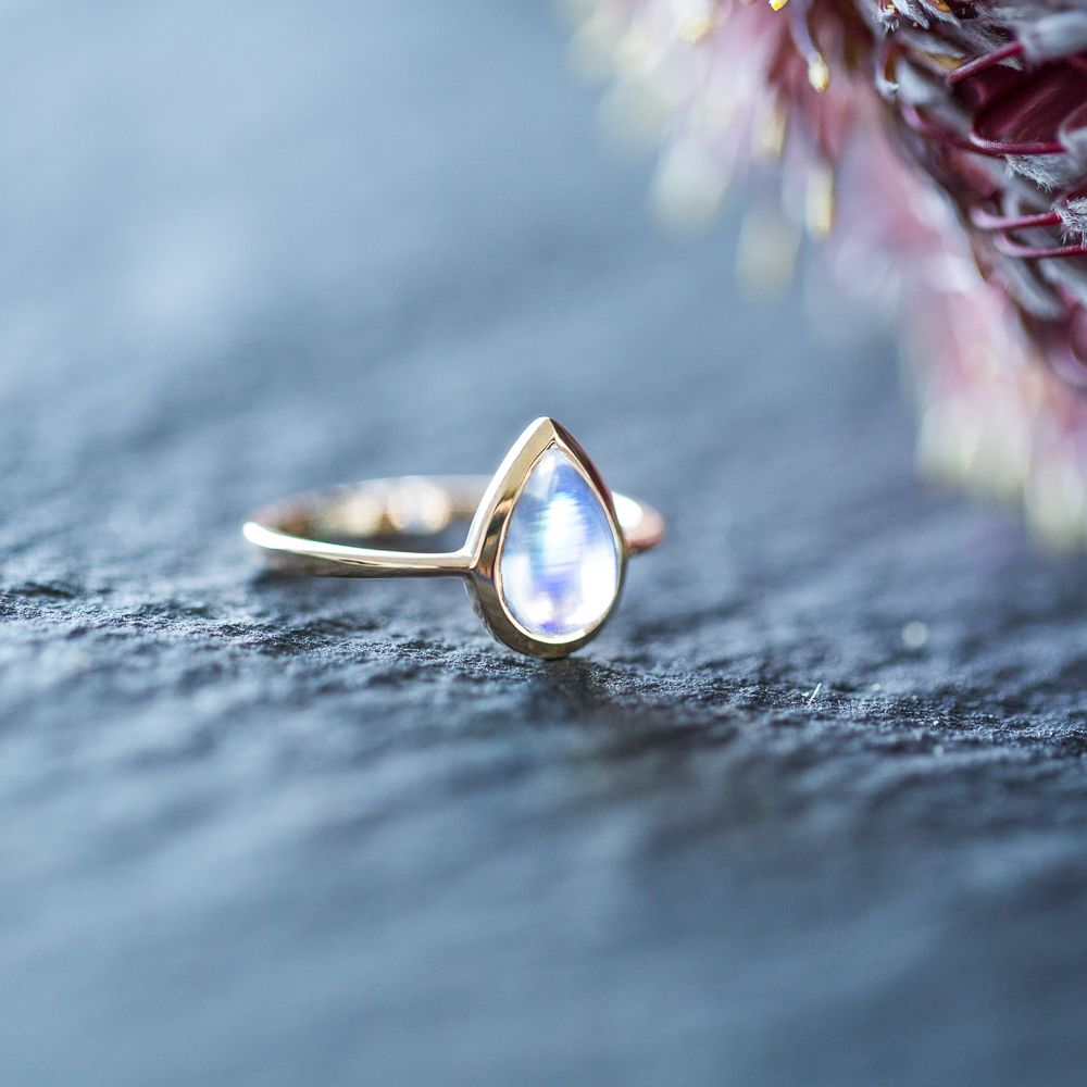 It was such a serendipity moment in my life .. I have been traveling to India for the past 6 years, and fell in love with not only the country but also many of the Hindu Goddess and Gods and I have love moonstone since I was a young girl, as well as this year was a special milestone birthday .. and then I saw this ring, after owning many of Violet Gray chakra pendants – it was meant to be! I reached out to Alex and she was amazing to work with. Not only to create me a Lakshmi ring but to make sure it was also so perfect just for me. It includes a hidden sapphire which is my birthstone and the word “Santosha” engrave in the band – my mantra …