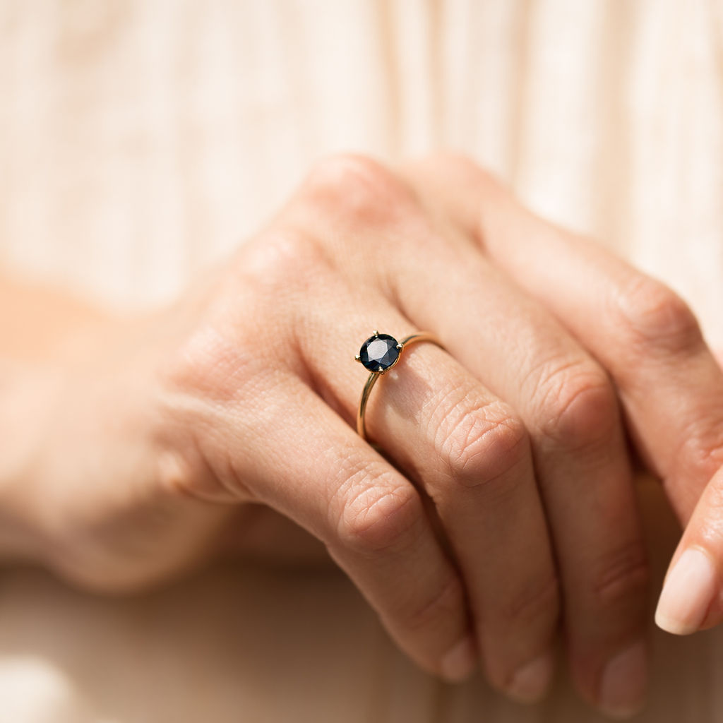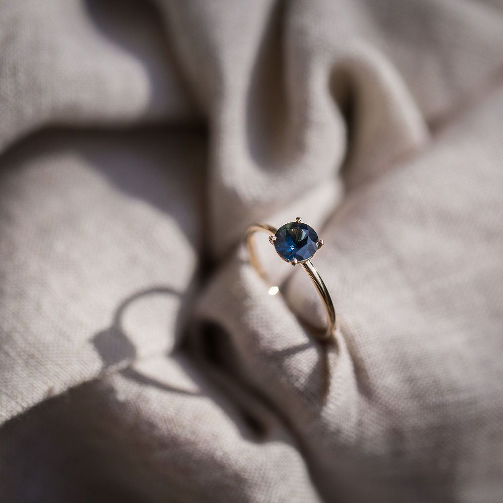 NYX was calling my name and now she feels at home on my hand. She is delicate, intriguing, almost a different colour each time she catches my eye. Like the ocean and the sky, she offers endless variety in her hues. Feeling is grateful to wear her. Her blues & yellow, reflecting the birthstone colours of myself, my husband, and our two daughters, a big reason that attracted me to her. Alex was an absolute pleasure to communicate with, the resizing is flawless, the whole transaction has been joyous. The beautiful wooden ring box is something to behold. Thank you Alex, grateful for your work.