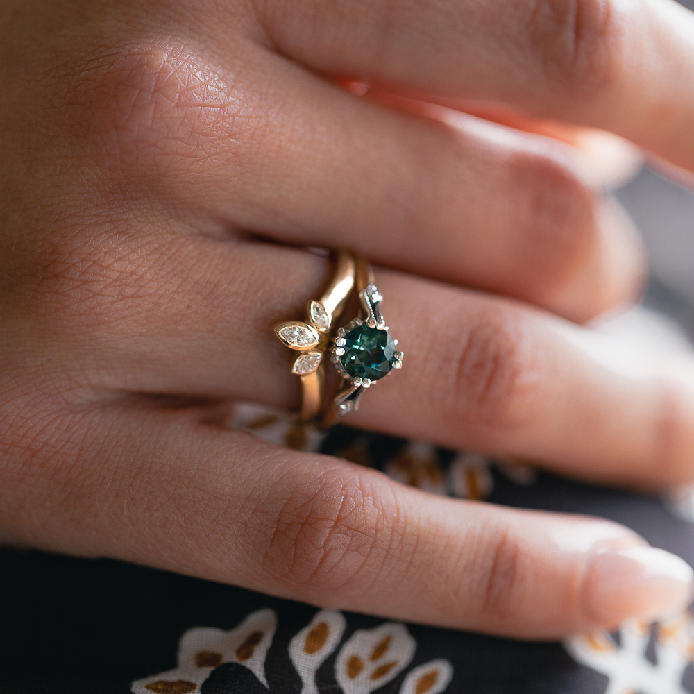 Upon request, this beautiful ring design can be customised with alternative gemstones, metals, engraving and alternative design elements.