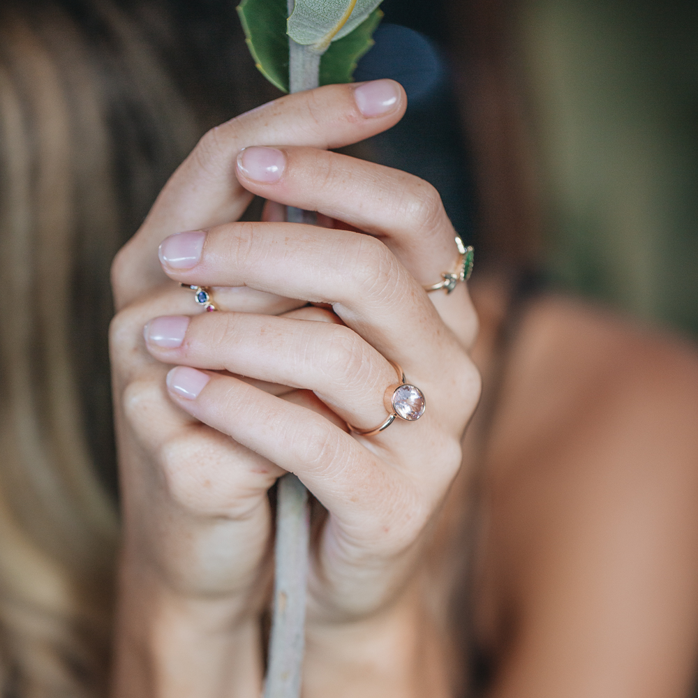 I was proposed to with the stunning Rose ring. I’m so in love with it and it’s even more beautiful in real life. It captures the light nicely- sometimes looking pink and sometimes grey. I get so many compliments on its simplicity paired with its uniqueness. A truely beautifully designed and crafted ring.
