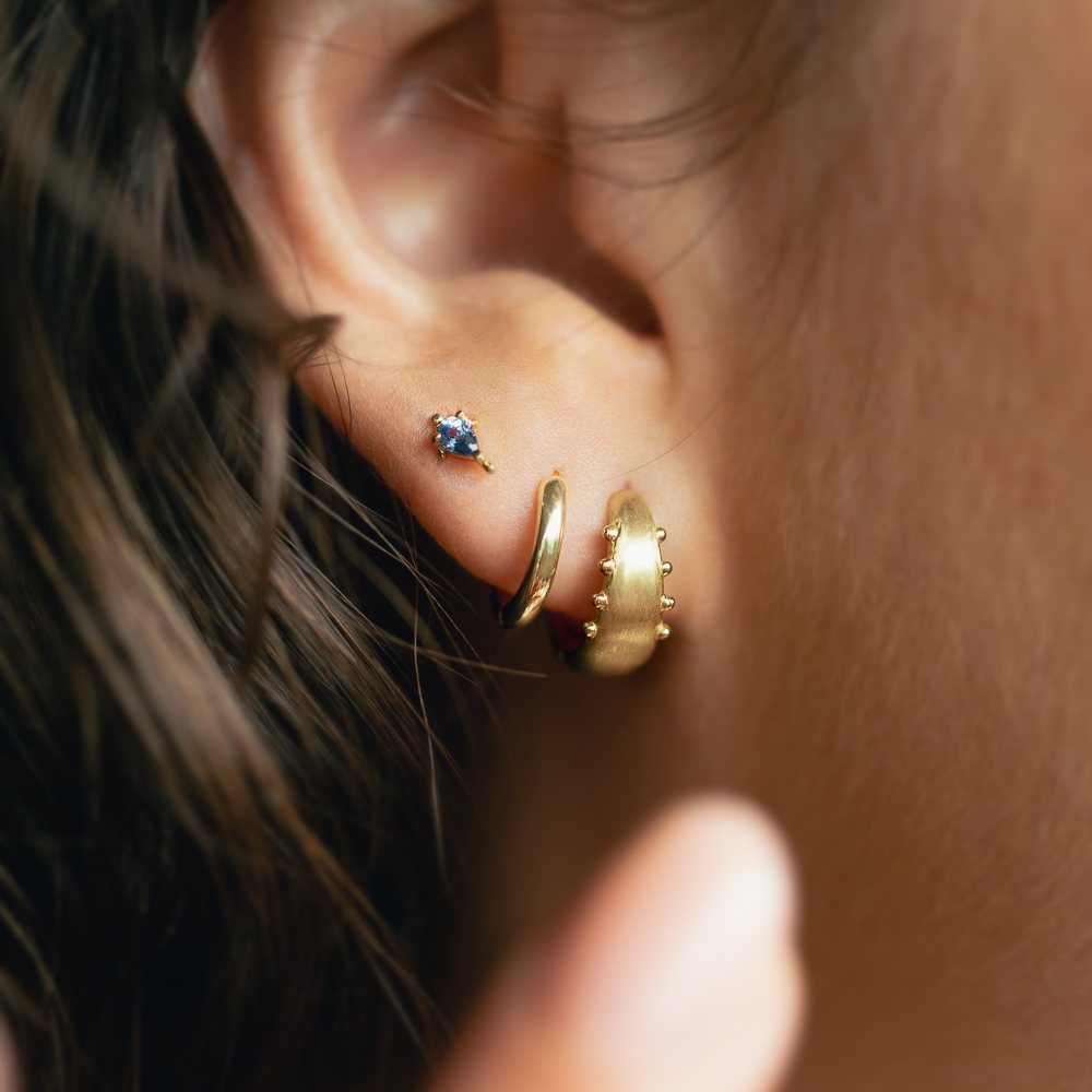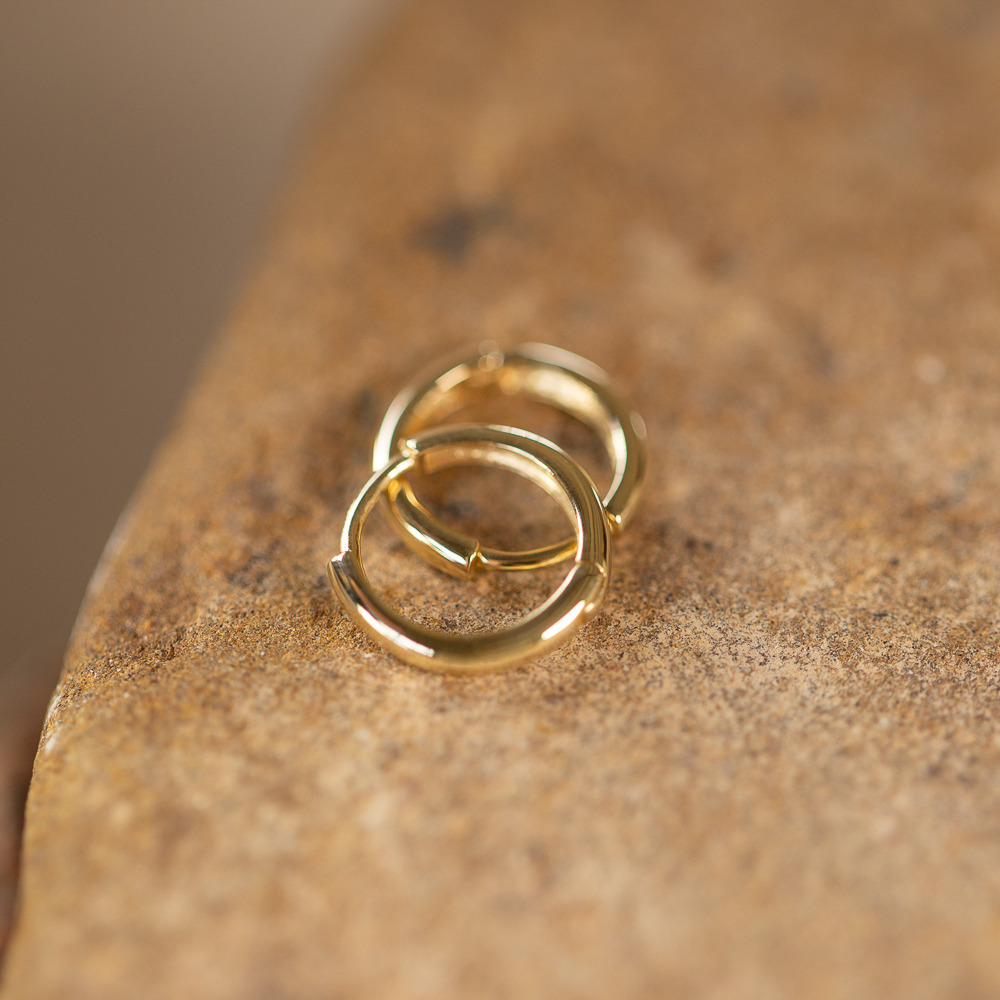 Viva. Your no-nonsense pair of solid gold mini Huggies to be worn daily. On repeat.